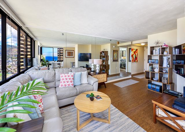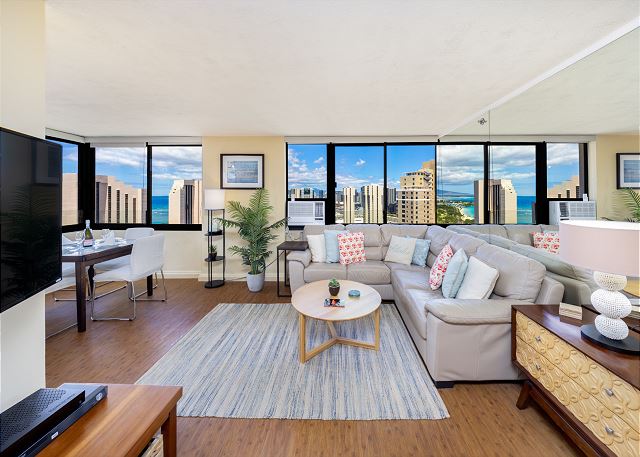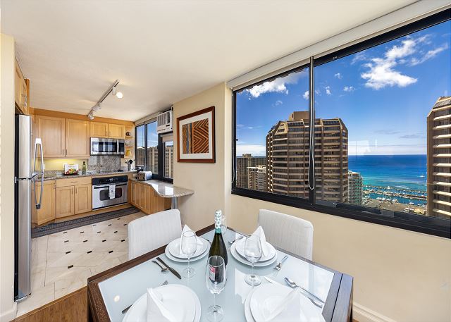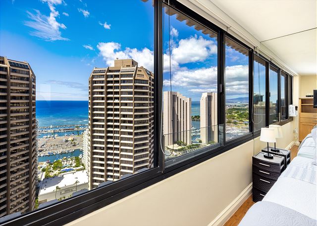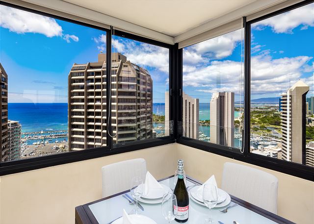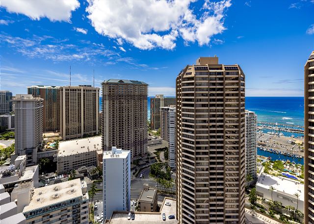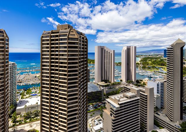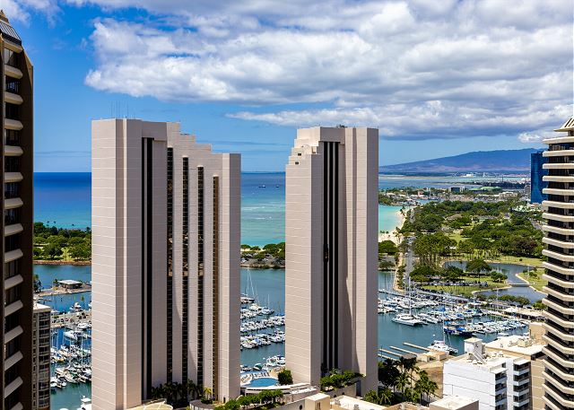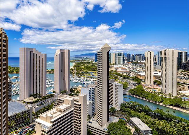 The perfect getaway, high above world-famous Waikiki Beach! The Windsor unit 3804 has Limitless views of the sparkling ocean, the Ala Wai marina, Ala Moana Park, and the twinkling lights of downtown Honolulu. Whether it's a romantic interlude or chance to work remotely from an exotic location, this is the perfect spot.